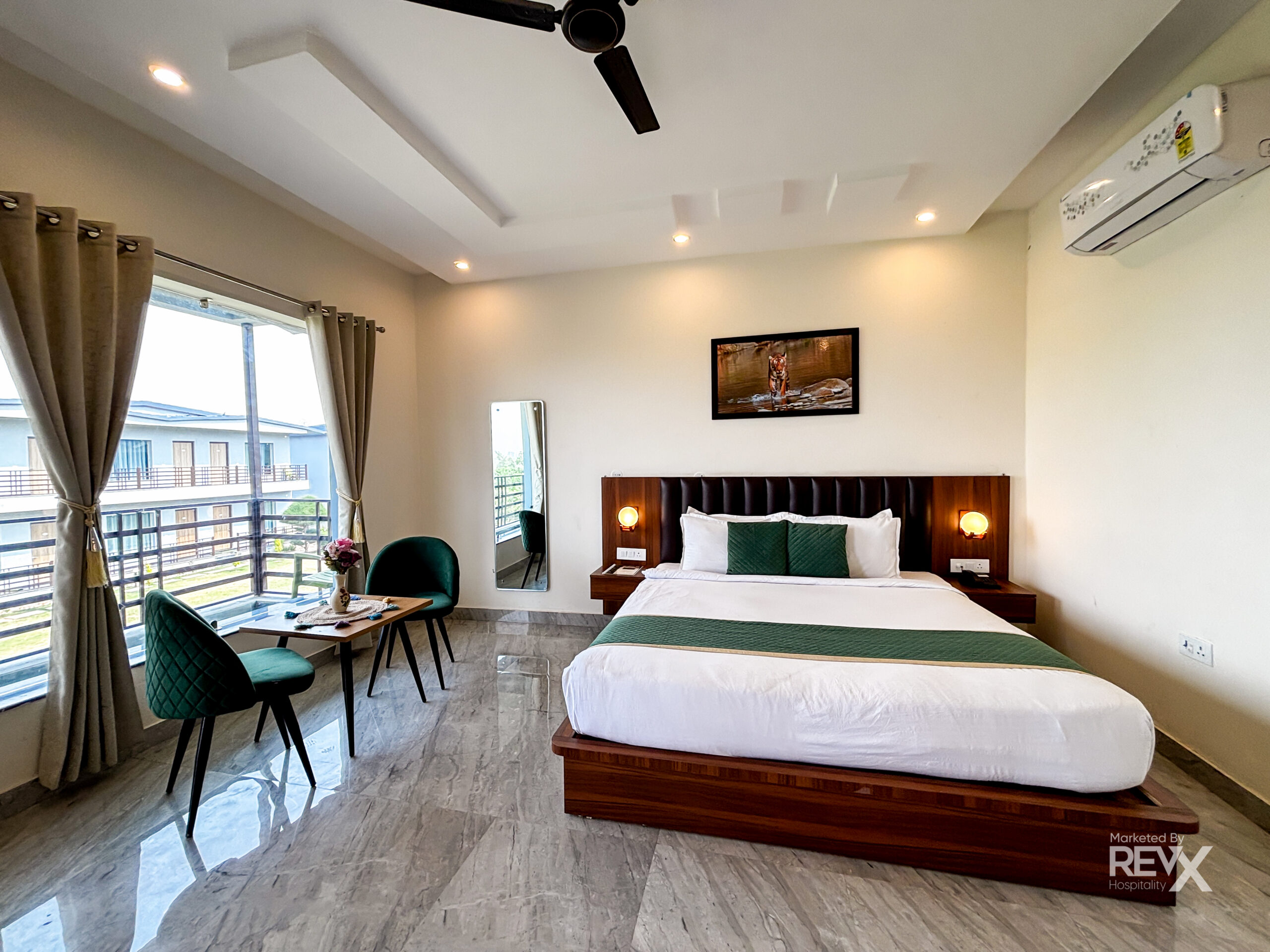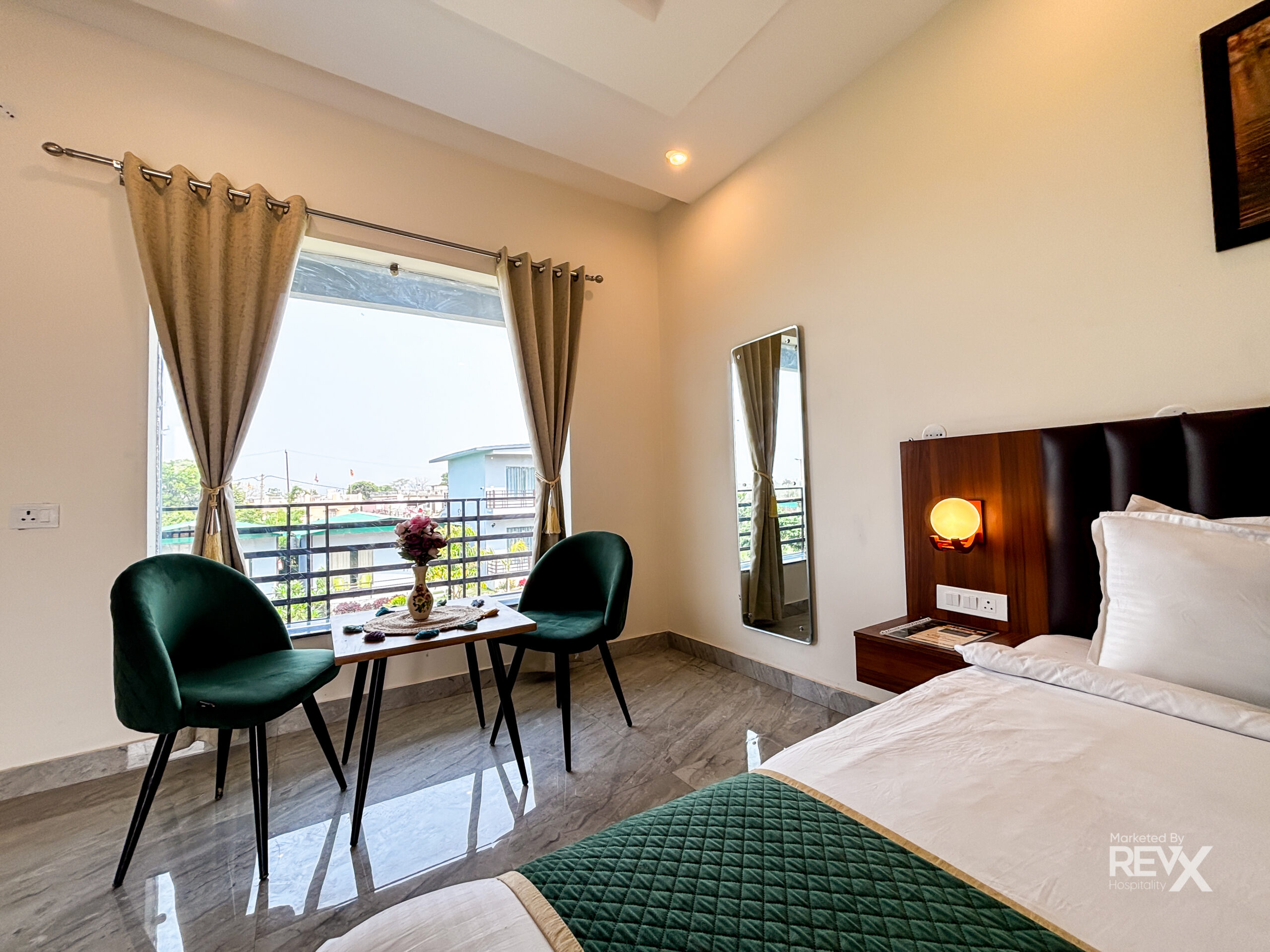 Super Deluxe room is an ample apartment-sized space with a king-sized, two double wardrobes, and a plush lounge set. Furthermore, a table and chair are offered as an added perk for extra placing space