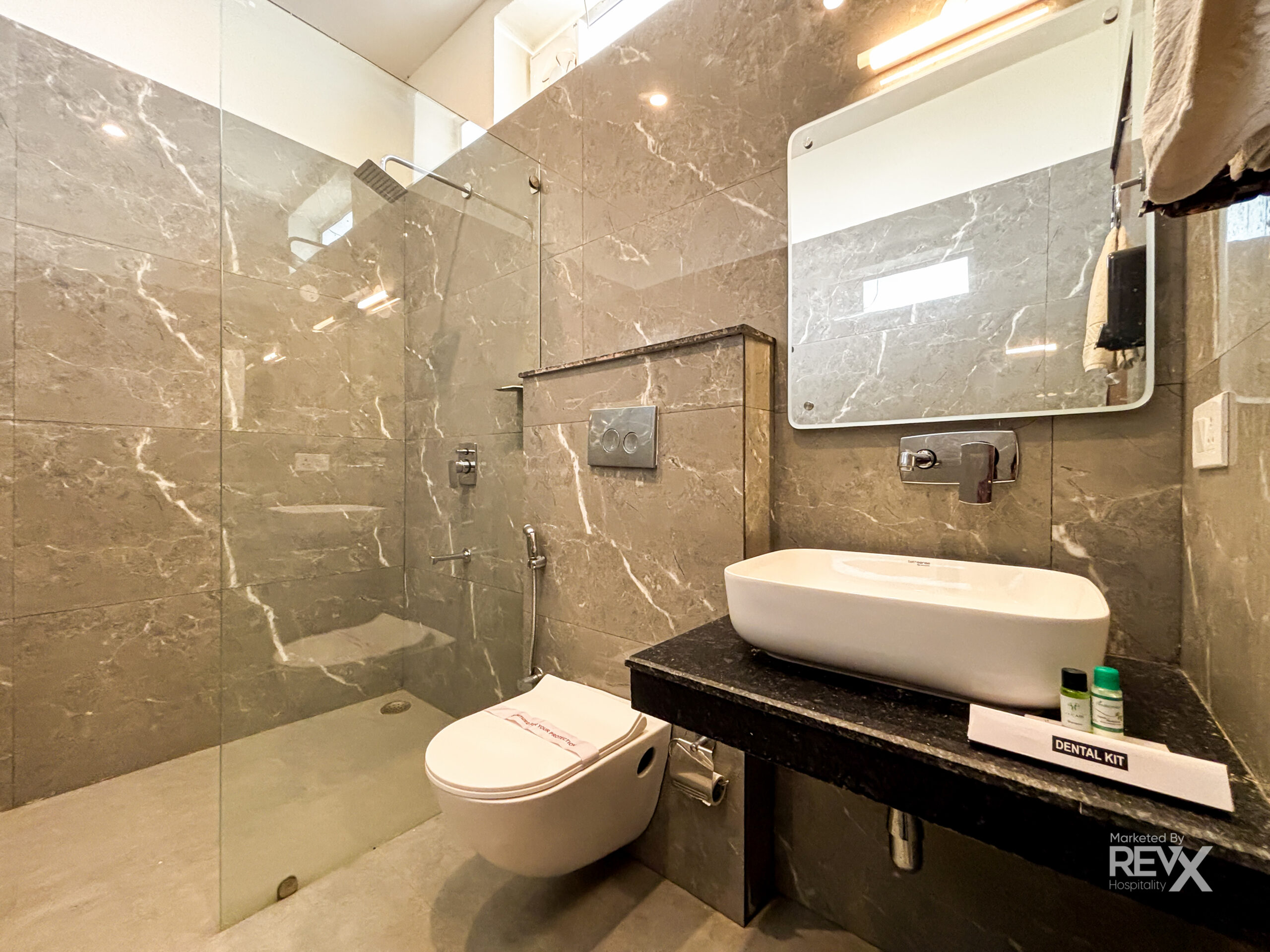 • Bathrooms with enclosed rain forest shower